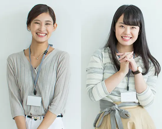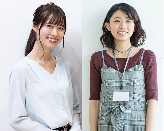 ■写真左/Iさん:事務の仕事で活躍中 ■写真右/Tさん:大手旅行会社の総務人事で活躍中
