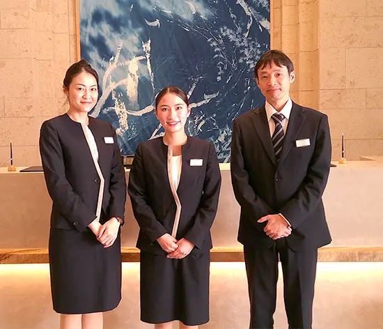 前職でも、富裕層のお客さまを対応する仕事だったのですが、この仕事では目的があって話すというよりは、自分の両親と話すような感覚で、生活の一部として密接に携われることが大きな違いだと思ってます。お仕事の流れとしては、朝フロントを開けると皆さんいらっしゃって、ご入居者様の共用スペースのご予約や、タクシーの手配などを行います。その後も鍵の貸し出しや事務手続きを行ない、夜はレジデンスの巡回や大浴場のチェックを行います。これをシフト時間帯ごとで分担していますね。