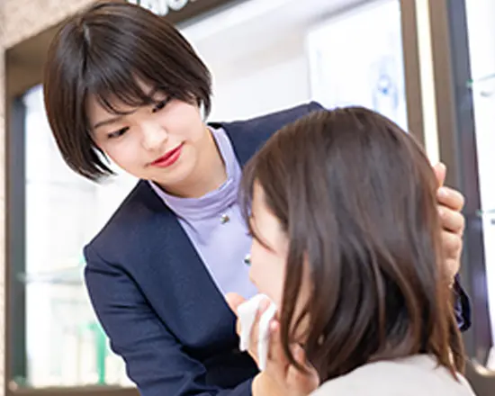 主な仕事は、お客様に商品のご紹介とお手入れ方法のご提案。