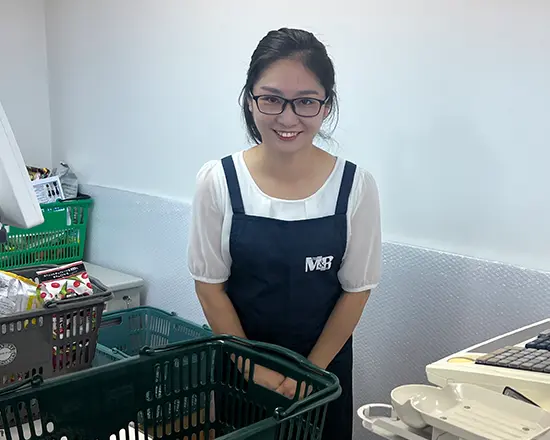 今はスーパーマーケットの店舗管理を担当しています。シフト作成や請求書対応といった事務作業から、スタッフの面接・採用・研修、現場での社員管理まで、日々の業務は多岐にわたります。最初は戸惑うことも多かったものの、現場でスタッフ一人ひとりと向き合う中で、少しずつ自分の役割ややりがいを見つけていきました。