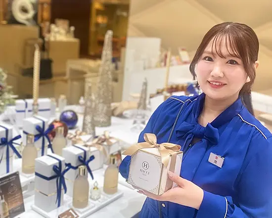 一番の魅力は、お客様の声をダイレクトに商品開発へ届けられることです。例えば、特にご好評だったハンドクリームについて、多くのお客様から『この香りの香水が欲しい』というお声をいただいたことがあり、その声を具体的な提案として商品企画チームにフィードバックしました。実は、本社のメンバーは、全国的に店舗に立ち寄っていただくことが多いので、店舗に立つスタッフとの距離が近く、日常の接客で得た、新商品の誕生に繋がるお客様のリアルな声を届けられるのは、大きなやりがいです。