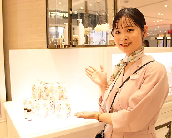一番の魅力は、お客様の声をダイレクトに商品開発へ届けられることです。例えば、特にご好評だったハンドクリームについて、多くのお客様から『この香りの香水が欲しい』というお声をいただいたことがあり、その声を具体的な提案として商品企画チームにフィードバックしました。実は、本社のメンバーは、全国的に店舗に立ち寄っていただくことが多いので、店舗に立つスタッフとの距離が近く、日常の接客で得た、新商品の誕生に繋がるお客様のリアルな声を届けられるのは、大きなやりがいです。