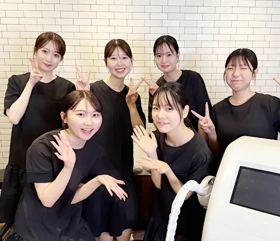 O.M.さん(渋谷店):お客様がサロンに足を運んでくださった瞬間から、ポジティブで明るい気持ちになっていただけるような接客を心がけています。毎月ご予定を調整してご来店くださるお客様に、楽しく居心地の良い空間を提供することで、「お肌やお身体のケアを頑張ろう!」と思っていただけると信じています。