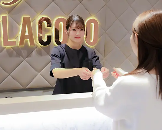 A.M.さん(難波店):笑顔を絶やさず、持ち前の明るさで接客することです。お客様が気持ちよく楽しく通っていただけることが何より大切。ご来店された瞬間から楽しく丁寧に接客しつつ、お悩みに寄り添いながら施術することを心がけています。「LACOCOを選んで良かった」と感謝していただけるよう、日々努力しています!