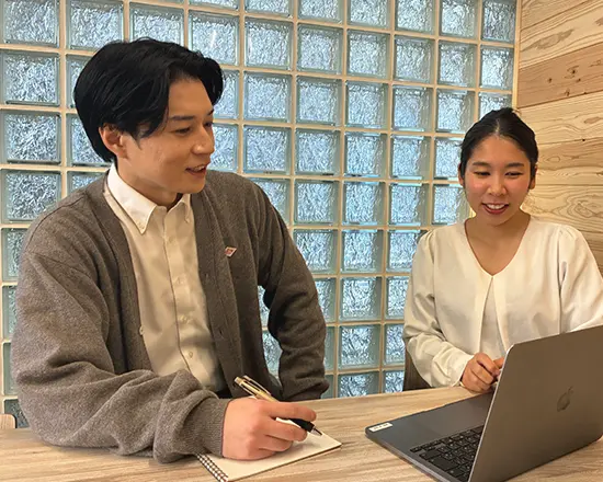 正直、内勤は初めてでExcelも基本的な入力くらいしかできなくて、最初は不安でいっぱいでした。でも、先輩が本当に親身になってサポートしてくれたんです!忙しい時でも欠かさずに声をかけてくれて。最初は書類整理や簡単なデータ入力から始めて、できることを少しずつ任せてもらえました。基本的なところからじっくり覚えさせてもらえて、今も安心して働けています!