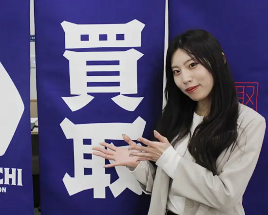 査定の知識がなくても、写真を送るだけで本部の専門スタッフが鑑定してくれるシステムがあるので、安心して現場に出ることができました。商談中もすぐそばに先輩がいて、困ったらすぐに質問できる距離感。未経験スタートの私でも、無理なく一歩ずつステップアップできたと感じています◎