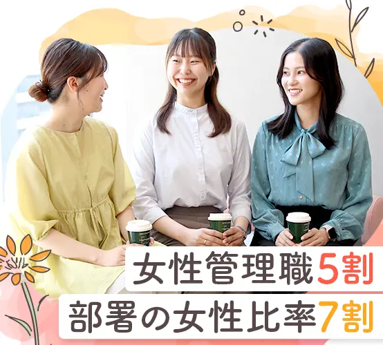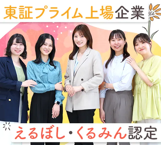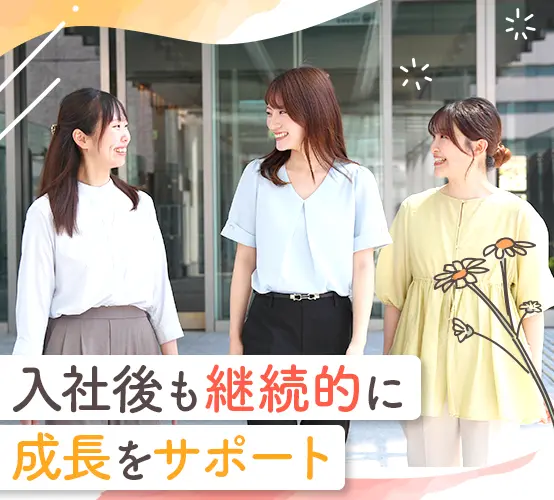★入社後まずは1ヶ月の研修からスタート!★WordやExcel、ビジネスマナーなど基礎から学べます★中途入社でも同期がたくさん!研修中はもちろん、配属後も継続して相談し合える存在です♪ ★入社時の経験・知識は一切不問!★先輩の前職もアパレル販売やブライダル、営業など…様々です◎ ★男女問わず活躍できる環境★実際に、配属部署の7割が女性です★もちろん、将来のキャリアアップも目指せます♪ ★入社後も継続してスキルアップできる環境★OJTだけでなく、年次や階層に応じた研修が整っており、一人ひとりのキャリア実現に向けて成長できます◎★選抜型の研修もあり、キャリアの幅も広がります! ★東証プライム上場企業の安定基盤が当社の魅力★健康経営優良法人2025など、社員一人ひとりが安心して働ける多くの認定を取得しています! ★仕事とプライベートのメリハリをつけられるように、働きやすい環境をご用意しています◎★夏季休暇(5日間)や記念日休暇、特別休暇もあり!★有休初年度10日付与♪ ★社員の成長・スキルアップを全力で応援★資格取得に向けた、勉強会も随時開催中!★対象資格に合格したら、お祝い金と受験料が支給されます☆ ★産育休取得実績は100%!&復職実績も多数★結婚・出産などのライフイベントを経て、長く活躍中の女性がたくさん居ます◎ ★マネジメントやエキスパートなど多彩なキャリアパスあり!★実際に適性や志向に合わせてキャリアチェンジ・キャリアアップしている女性の先輩が多数!