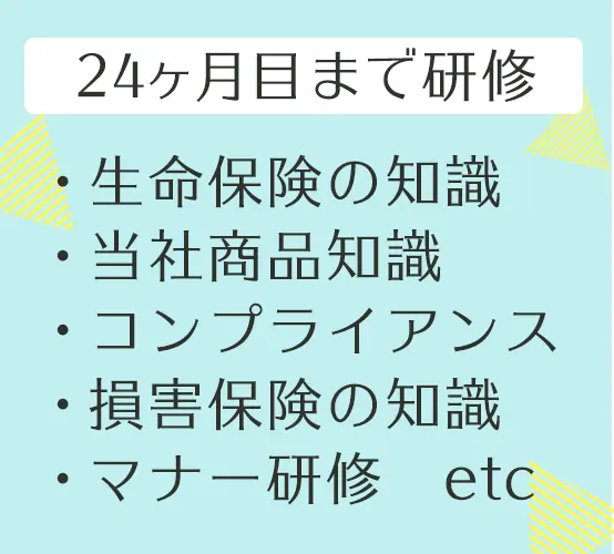 「“大樹”のように、しっかりと大地に根を張り、しっかりとお客さまを守り、よりそっていく」この想いを胸に、日本生命グループとしてもさらなる成長をしていきます。 250万件を超える契約をいただいています。お客さまがいま、何を必要としているのか、 将来何が必要になるのかを考え、ご提案することが私たちの大切な使命です。 全国各地に拠点を展開しています。1万人を超える仲間と共に、日々お客さまの安心をサポートしています。 個人宅への飛び込みなどはありませんので、未経験でもはじめやすいお仕事が魅力です。 上記のほかにも、「損害保険募集人資格」「変額保険販売資格」「シニア・ライフ・コンサルタント」「AFP資格」「CFP資格」など多彩な資格取得のサポートがあります。 充実したサポート体制で営業が初めての方でも安心!各種資格取得に向けたサポートもあります。 仕事と家庭の両立をサポートする制度が充実。子育てしながら安心して働いている先輩もたくさんいます。 入社2年以内等、一定の条件を満たした場合、月10,000円(子ども1人あたり)を補助します。 そのほか、映画前売券や人気のライブ・舞台の割引・先行販売、アミューズメントパークや美術館、旅行にも使える従業員優待サービスがあります。