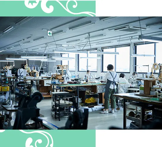 IBIZA(イビサ)のバッグは、大量生産せず、一つひとつ想いを込めながらつくられています。 業界でも数少ない国内自社工場を持ち、日々生産しています。 革製のアイテムはいつの時代も需要があるため、長期的に働くことができます。 時に、「母が使っていたバッグを譲り受けました」、というような、うれしい声も届きます。 長年に渡って「メッシュ」「パッチワーク」「カットワーク」などの技法を採り入れたバッグをラインアップしています。 革のメンテナンスなどアフターフォローまで行っていくので、お客様と長いお付き合いができます。 トレンドありきの製作ではなく、使う人のことを最優先に考えたバッグ作りを実践しています。 地域貢献として地元小学生の工場見学を受け入れることもあります。 自社工場内で働くため、デザインをしたバッグが形になるのをその場で見ることができます。