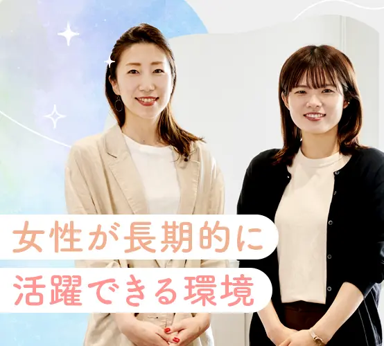 ≪未経験スタート多数≫アパレルやコスメの接客経験者など当社で営業デビューした社員も多く活躍しています。「営業に興味がある!」「同世代の仲間と一緒に働きたい」そんな方には最適な環境です。 入社後は「クラウド」「OS」などITの基本知識を学べる1週間の研修からスタート!業界知識がなくても安心してはじられる環境を整えています♪また同期も一緒なのでご安心ください! お客様と対面で仕事をすることはなく、オンライン(主に電話)でのやり取りだけ!自由なスタイルで伸び伸び働ける環境です。 ★土日祝休み★残業月10h以内★オンもオフも楽しむ!そんなイキイキと活躍する社員が多くいます!仕事もプライベートも充実させられる環境です! ライフイベントを経ても、長く安心して働き続けられる環境をご用意しています。子育てと仕事の両立にも理解が深い職場です! 入社して3年半で課長になった20代の社員をはじめ、多くの女性社員が活躍しています。昇進もスピーディーなため、キャリアアップを実現したい女性の入社も多くいます! ITパスポートや基本情報処理技術者、TOEICなどステップUPを応援するために、資格内容に応じて合格奨励金または、受験費用を支給しています。 まずは面接で「希望の働き方」や「なりたい姿」をお話しませんか?当社ではライフイベントを経ても活躍している社員が多くいます。一緒にキャリアプランを考えていきましょう♪ご応募お待ちしています。 長く働き続け、キャリアを描ける環境だからこそ、女性として輝き続ける先輩をロールモデルとして見ることができます。