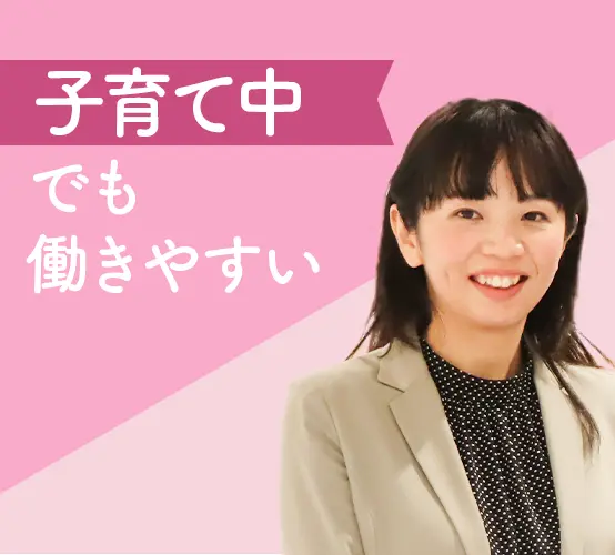 幅広い年代の方が活躍!子育て中の方や子育てが一段落して社会復帰した方も在籍しています。 実際に残業は月平均0~5時間程度。ご自身で残業時間は調整可能ですので、あまり発生しません。 ブランクが空いてしまった方も在籍中。あなたの新しいチャレンジを応援します! 1日5h~の時短勤務OK。曜日不問なので、自分の予定に合わせられるのも魅力です! これからも、私たちはこれまで以上に自分らしい働き方が実現できる社会を目指していきたいと考えています。 女性社員もたくさん活躍中!ライフイベントを経ても長く働ける環境が整っています。 リモートワークの実績もあります。それぞれのワークライフや希望に合わせた働き方を実現させることができるのも、当社ならではの魅力です 経験や年齢は不問。面接日や入社日はご相談に応じますのでお気軽にお問い合わせください! 子育て世代が多数活躍中!家庭や育児との両立にピッタリな環境です!
