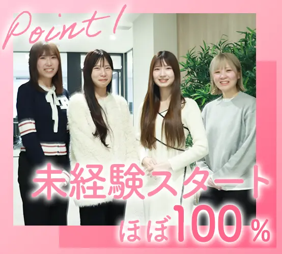 元化粧品の販売スタッフ、アパレルスタッフ、コールセンタースタッフ、一般事務など、社員の前職はさまざま。みんな未経験からスタートしています! 2024年に移転したオフィスはキレイで、毎日快適に働けます◎リフレッシュできるスペースも充実しています。 基本的にオフィス内での勤務となるため、毎日好きなスタイルでオシャレを楽しむことができます♪ブリーチやインナーカラーを取り入れている社員もいますよ! お誕生日には、会社からプレゼントが♪他にも、1食330円で利用できる食事補助制度など、嬉しい福利厚生も充実!目標達成時には、オフィスに職人さんを呼んでお寿司を楽しむ「寿司ナイト」を開催しました! お休みの取りやすさはもちろん、残業の少なさもポイント。ほとんどの社員が定時で退社!仕事終わりの自分時間もしっかり大切にできますよ◎ 社員同士の仲が良いことも、エニーキャリアで働く魅力のひとつ♪メンバーの平均年齢は28歳。入社後はユニット(チーム)へ配属されるため、分からないことも気軽に質問しやすい環境です。 教育担当の先輩がマンツーマンでお仕事をお教えします!いつでも隣にいるので、気軽に相談してくださいね♪ 賞与は嬉しい年2回支給!昇給機会も年2回あります。その他、各種手当も充実しているので、安定した収入を確保できます◎ フリードリンクを完備していて、お水、お茶、コーヒーなどを楽しめます。自宅から重たい水筒を持って通勤…なんてこともありません♪