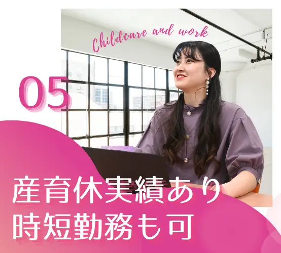 現在、育休中の社員も。子育てと仕事を無理なく両立できます!