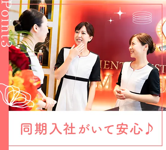 トラブルの原因を根本から見つめ直すことで健康美を目指す、当社独自のオリエンタルエステ。「独自のメソッドに惹かれた」という理由で入社する社員がほとんどです!