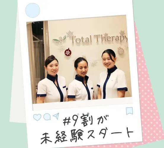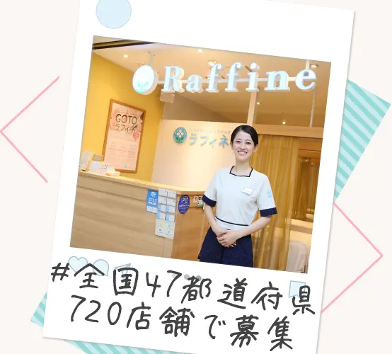 未経験スタート者は9割!元医療事務、アパレルスタッフ、保育士、飲食店店員などが活躍中です。 34日間の研修あり!通常30万円かかるプロの技術を無料で習得できます◎その間、交通費も会社が負担するのでご安心くださいね。 業務が始まってからも、勉強会や講習会を毎月数回定期的に開催しています。常にスキルアップできる環境です! お人柄重視で採用します♪正社員になるのが初めてという方も歓迎です★*+。 全国47都道府県に店舗あり!配属は希望を考慮して決定します。 正社員のセラピストとしてしばらく勤務した後、ご希望によっては、営業・店舗開発・人事、経理・広報などの店舗運営を支える本部スタッフや、業務委託のセラピストを目指すことも可能です! 残業はほとんどありません。有給も基本は希望が通るため、プライベートもしっかり充実させられますよ◎ 月給+インセンティブ+賞与年2回支給あり!安定的にお給料をGETできます! お客様の来店予測をベースに、AIでシフトが組める仕組みになっています。入社年次に関係なく、稼ぎやすい時間帯に順番に入ることも可能です!