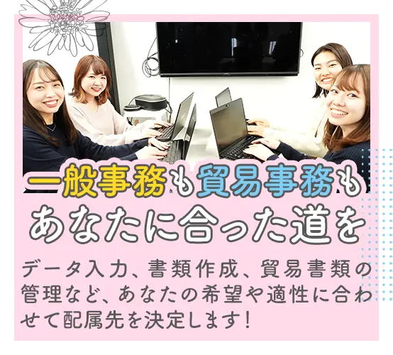 ランスタッドといえば\充実の研修♪/研修や定期的なフォロー制度をご紹介! 未経験、第二新卒、既卒の方大歓迎!手に職をつけて長く働きたい方、安定した働き方をしたい方…どんな方もご応募ください。 入社後しばらくは、自宅で受講可能な研修プログラムが整っています。 オンオフのメリハリをつけて働けます!私生活も大切にできる環境です♪ 同世代のメンバーもたくさん活躍しています!一人ひとりの状況に合わせて柔軟にサポート。活気あふれる環境で働けます♪ 事務でスキルを磨く以外にも、将来の選択肢も豊富!キャリアアップを目指せる環境です。 5年後、10年後も長く働ける環境があります。ランスタッドのプログラムで、長期的にあなたのキャリアアップをサポートしています! 自分らしいスタイルで自由に働けるのが魅力です!あなたはどんなスタイルで働きますか? 研修初日から定期的な面談を実施。あなたの悩みや不安を専任のフォロー担当が支えていきます。