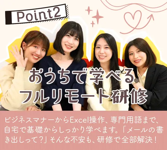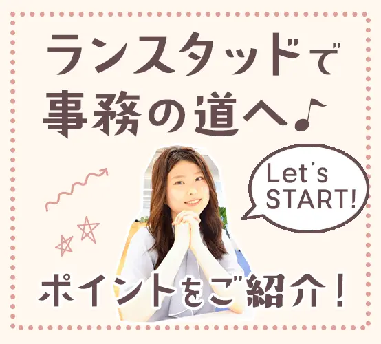 ランスタッドといえば充実の研修♪研修や定期的なフォロー制度をご紹介! 働き始める前の不安があっても大丈夫。未経験でもしっかりとした研修があり、安定した会社で専門性をGETできます◎ 入社後しばらくは、自宅で受講可能な研修プログラムが整っています。 オンオフのメリハリをつけて働けます!私生活も大切にできる環境です♪ 同世代のメンバーもたくさん活躍しています!一人ひとりの状況に合わせて柔軟にサポート。活気あふれる環境で働けます♪ 事務でスキルを磨く以外にも、将来の選択肢も豊富!キャリアアップを目指せる環境です。 5年後、10年後も長く働ける環境があります。ランスタッドのプログラムで、長期的にあなたのキャリアアップをサポートしています! 自分らしいスタイルで自由に働けるのが魅力です!あなたはどんなスタイルで働きますか? 研修初日から定期的な面談を実施。あなたの悩みや不安を専任のフォロー担当が支えていきます。