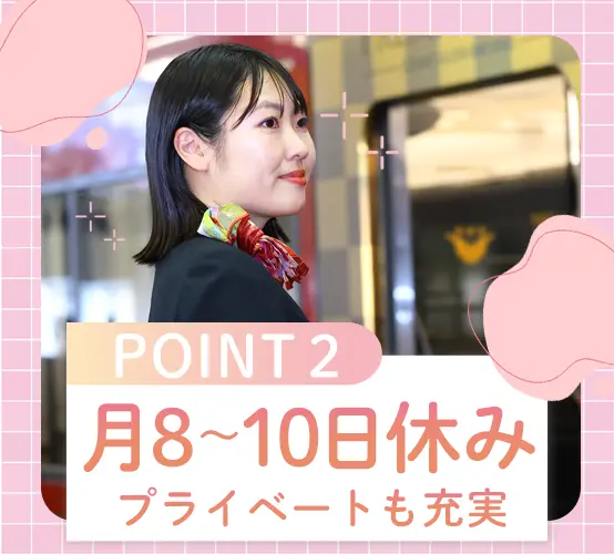 京阪グループならではの安定基盤あり♪幅広い年代の先輩社員が活躍しています。 人柄重視の採用です!接客スキルを学べる環境を整えています。 年休115日+αのお休みを確保!リフレッシュ休暇もご用意しています。 同年代の仲間と一緒に働ける♪若手社員を中心とした活気ある職場です。 最大2万円の役職手当など安心待遇!もちろん産育休の制度もあります♪ 班単位の勉強会やお悩み相談、その他各種研修を通じてサポートします。独り立ち後も安心して働けます♪ 正社員登用あり♪意欲次第でどんどんキャリアUPできます。 シフト制のため基本残業はありません!メリハリ付けて働けます。 入社前にお仕事見学会を開催しています!実際に先輩社員と乗務を体験♪