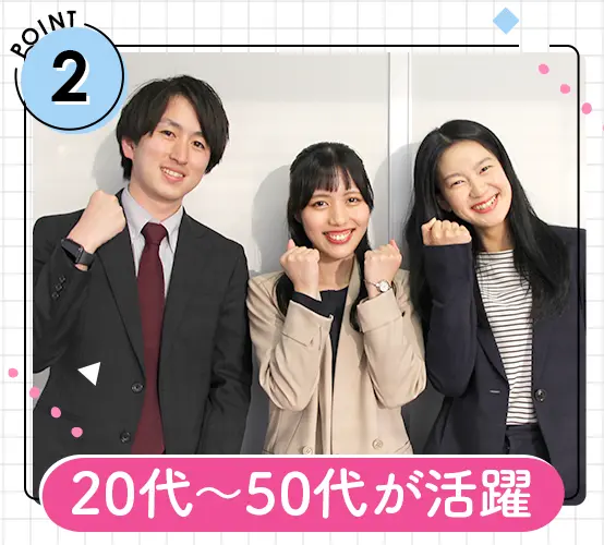 幅広い世代の先輩が活躍中◎長く働き続けられる環境が整っています!職種の幅も広いため、ライフイベントに合わせてキャリアチェンジする方もいます♪