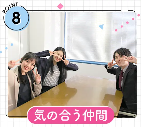 明るく、話しやすい仲間がたくさん!社内の雰囲気もとてもよく、どんな小さな悩みも話しやすいです♪
