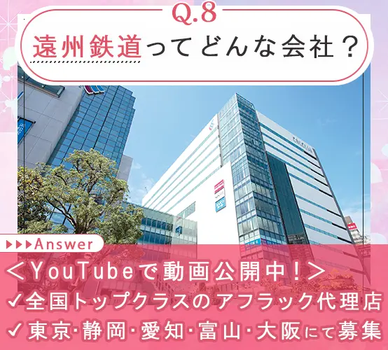 #新規開拓なし #知人営業なし#テレアポなし #採用育成なし #営業活動 #コンパクトな商談#1~2回の訪問で契約 #アポイント無料提供 #公平な差配#テレアポ分業制 #営業目標 #固定給保証 #アフラック #独自の評価制度 #経費会社負担 #営業車貸与 #直行直帰 #リモート#空いた時間に出社 #男女比3:7 #40代50代スタート多数 #YouTube「遠鉄の保険」で検索#3分で分かるお仕事動画