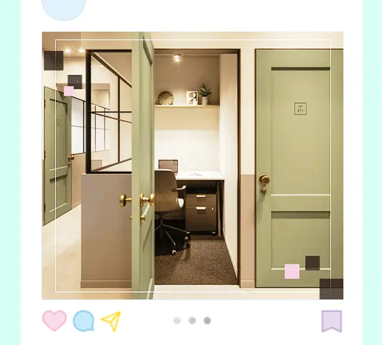 当社が手掛けるオフィスをご紹介!洗練されたオシャレ空間が魅力です♪ オフィスルームは業務に集中できる様、様々な工夫が施されています!入居する企業様はスタートアップ企業様を中心に幅広いのが特徴です。 オフィスをご利用いただいている方が使えるカフェラウンジあり!まるでバーのカウンターのような雰囲気の良いデザインです◎ Webミーティングなどで使用する個室も完備!外装にも内装にもこだわったレイアウトが魅力です◎ 実は当社のオフィスは全て同じデザイナーさんが手掛けているのが特徴!クリエイティブリユースなどを駆使した、デザイン性の高い他にないオフィスです♪ もちろん対面での会議を行うスペースも完備!ウッド調で温かく、話しやすい雰囲気を演出しています! その他にも至る所にこだわりが!オフィス家具やインテリアひとつとっても、オシャレで洗練されています◎ 既に、オフィスをご利用頂いているお客様は多数!もっと快適にオフィスを使っていただける様、サポートするのも大事な仕事です。 働く空間がオシャレだと、日々のモチベーションもUP!恵比寿駅から徒歩7分の好立地で、仕事も私生活も充実させましょう♪
