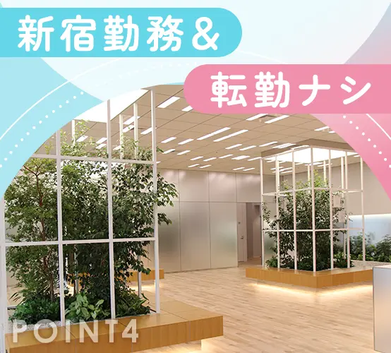 +°.未経験スタートOK.°+「正社員デビューしたい」人や「新しいことを始めたい」人、大歓迎♪当社の魅力を「いいな」と思ったら、ぜひご応募ください! +°.入社後の流れ.°+入社後は業界知識や仕事の流れをイチから学べる導入研修からスタート◎経験がない方でも安心して始められます! +°.オフの時間もたっぷり.°+年間休日123日|土日祝休み可|残業ほぼなし。有給は半休単位で取得OK!年10日以上取得する社員もいて、しっかり休める&趣味や家庭との両立もしやすいんです! +°.きれいなオフィスで働ける♪.°+勤務地は[新宿駅直結]の好立地!リフレッシュルームも完備していていつでも休憩できます◎社割で購入できるコーヒーやスープのご用意もありますよ♪ +°.オシャレで気分転換!.°+髪型・服装・ネイルは自由!髪色も派手すぎなければカラーリングOKです♪季節に合わせたオシャレも楽しめますよ。 +°.20代~30代が中心.°+オフィスは明るくフレッシュな雰囲気。若手が多く活躍しているので、話しやすいのも魅力です◎ +°.将来も安心の制度.°+産育休の取得・復職実績多数!育児時短勤務制度のほか、5万円の出産祝い金や退職金制度も完備しています。 +°.収入面も安心.°+4月・10月の年2回賞与を支給!月々の収入以外でも日々の頑張りをしっかりお返しします◎ +°.将来も安心の制度あり.°+2008年に創業し、今年で17年目。今では社員数3,400人以上、事業所数も250ヵ所以上と成長を続けています!(2025年9月現在)