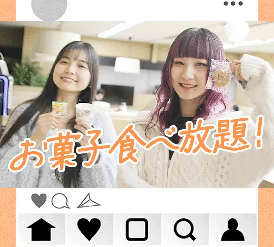 オフィスにチョコレート、クッキー、スナック菓子などを常備。自由に食べてOKです!ついついつまみ食いしちゃう…なんて声も♪