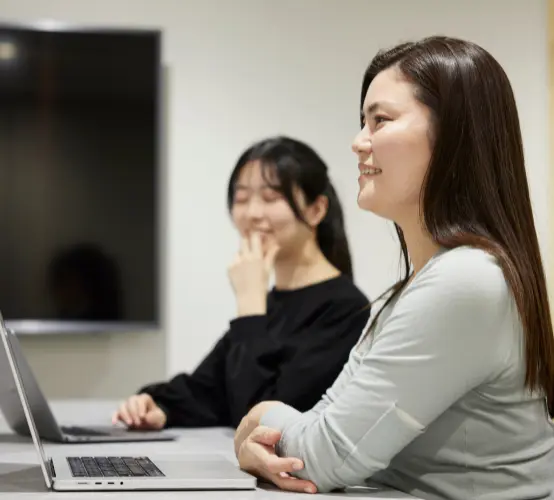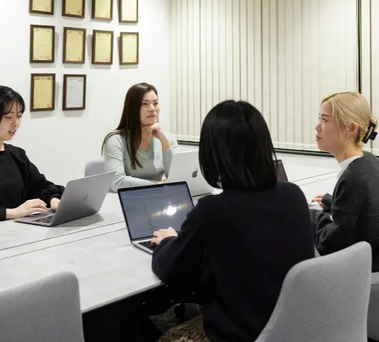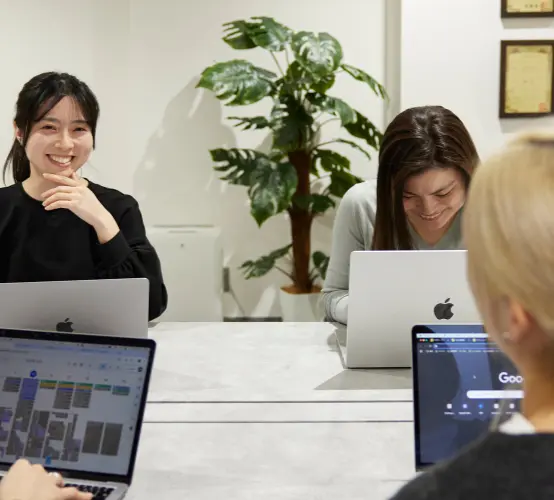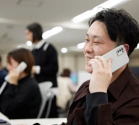 メンバー紹介① メンバー紹介② 実際のレクチャー風景です。少しハニかんでおりますが真剣です。 真剣な会議の様子。 ちょっと何か思いついた様子です。 カメラマンに緊張してか笑うのを堪えきれなくなったようです。 メールやチャットでのコミュニケーションは効率的で便利ですが、電話での直接的な会話も重要ですよね。 撮られ慣れていないからか、終始恥ずかしがっているご様子でした。 当社自慢のサービス名であり、会社のロゴでもあります。