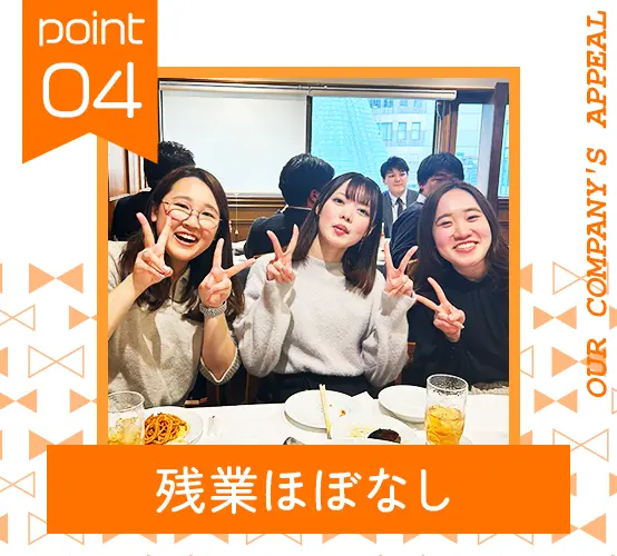 未経験から新しい仕事に挑戦したいアナタを応援!一生モノのスキルを身につけませんか? 前職は医療事務やアパレルなど、社員の約8割が未経験スタート!経験やスキル・知識は一切必要ありません◎ 「キャリアをしっかり築いていきたい」という方も、「ワークライフバランスを整えたい」という方も大歓迎! 基本的に残業が少なく、無理のある納期のプロジェクトには参画させないようにしています◎ フラットな関係性が築けており、仕事で困ったときにも相談しやすい同僚がたくさんいます! 20代~30代が活躍中の職場!女性社員の比率も55%◎安心して長く働いてもらえるように制度も整えています♪ 頑張りはしっかり給与に還元しています♪住宅手当やテレワーク手当など、その他福利厚生も充実◎ 研修を終えて業務に慣れてきた方はリモートワークが可能◎実際にほとんどの社員がリモート勤務です! 「挑戦してみたい」「話を聞いてみたい」と思っていただけましたら、お気軽に応募ボタンを押してください♪