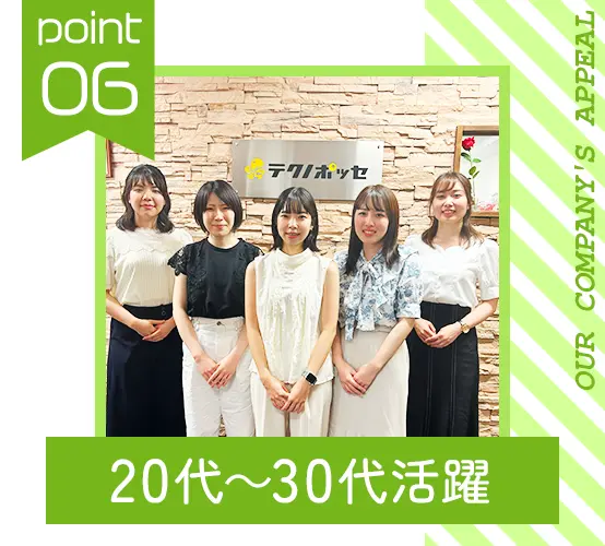 20代~30代が活躍中の職場!女性社員の比率も55%◎安心して長く働いてもらえるように制度も整えています♪