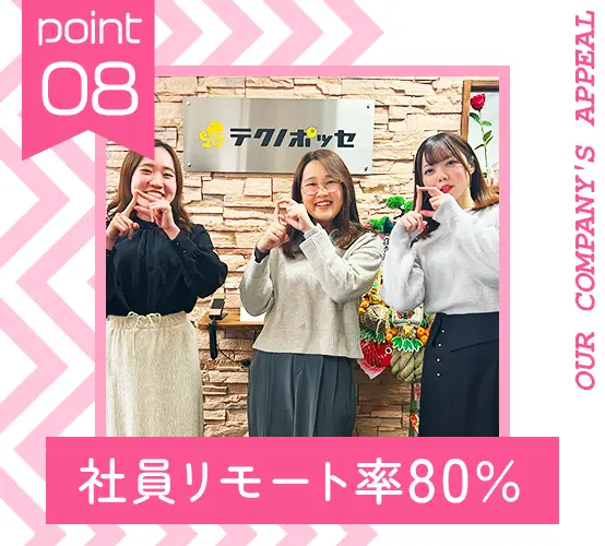 基本的に残業が少なく、無理のある納期のプロジェクトには参画させないようにしています◎