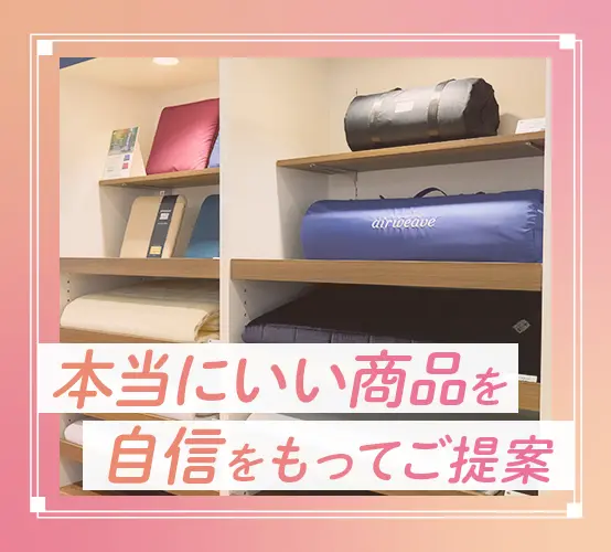 3分割マットレスを中心に、敷布団や枕など豊富なラインナップ。お客様一人ひとりに最適な睡眠環境をご提案できます!
