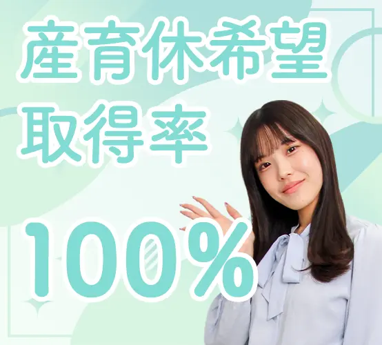 希望者の産休・育休取得率は100%!復帰後の時短勤務で活躍中のママ社員も多数◎