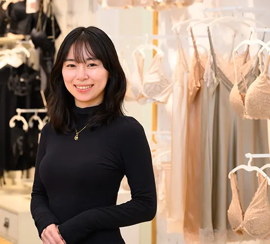 未経験でも大丈夫!しっかりとOJT研修を行います。 親しみやすい雰囲気で、お客様のお悩みやご希望に寄り添っていきましょう。 接客やアパレル経験がある方はぜひ!店舗拡大につき、店長ポジションもどんどん必要になっています。 チームワークを重視する社風!店舗の数字はみんなで作っていきます。 店舗にもよりますが、インバウンドのお客様が多め。今度は地元のお客様ももっと増やしていきます。 ミーティングや個別の面談も重視。しっかりと個々のキャリアに寄り添います。 20代のスタッフを中心に幅広い世代が活躍中!子育て中のママさんも多数在籍しています。 社員割引制度なども利用可能です。定価の半額で購入できます。ちなみに年2回、オンシーズンの商品を制服として支給もしています! 洗練×機能美にこだわった上質なランジェリーブランドをあなたも手掛けてみませんか?