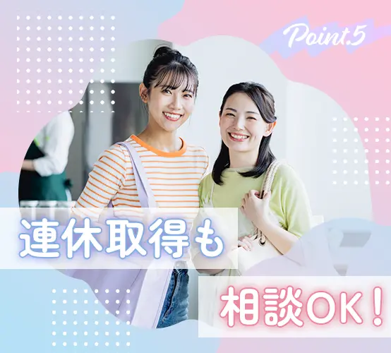 連休の取得実績あり!プライベートを大切にしながらお仕事を続けていける環境です。
