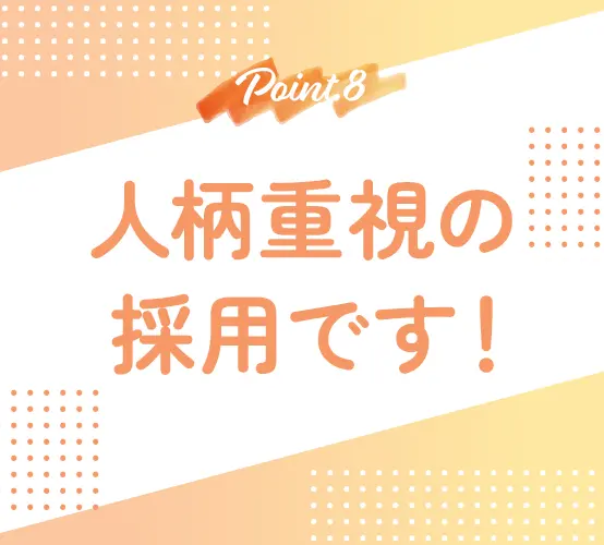 意欲やお人柄を重視した採用です!仕事内容や働き方など、入社前に気になるポイントは面接で何でも聞いてくださいね。