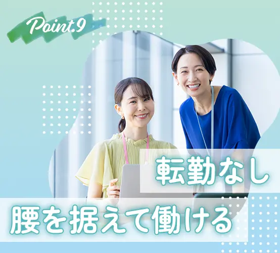 転勤がないため、年齢を重ねても安心して働けます。「家から近い場所で働きたい」という応募理由も歓迎!