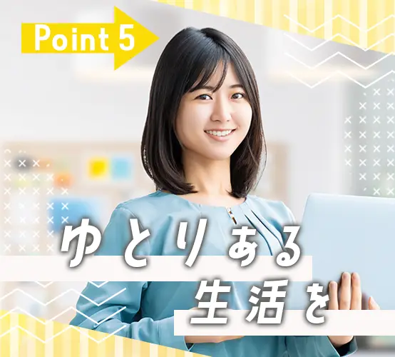 【土日祝休み|残業月10時間以内|年間休日121日|5日間連続休暇取得可】…と、ワークライフバランスも◎充実したプライベートを過ごせます!