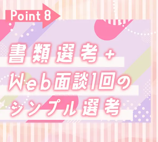 面談では「応募動機」や「希望勤務エリア」を中心に質問!シンプルな採用フローでスピーディーな内定・入社も可能です♪