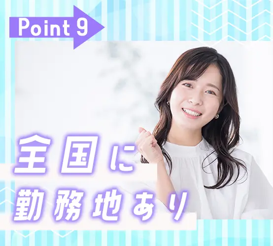 47都道府県に拠点があり、希望の勤務地やパートナーの転勤に合わせた異動も可能です!転職をせずに長く働き続けられますよ◎
