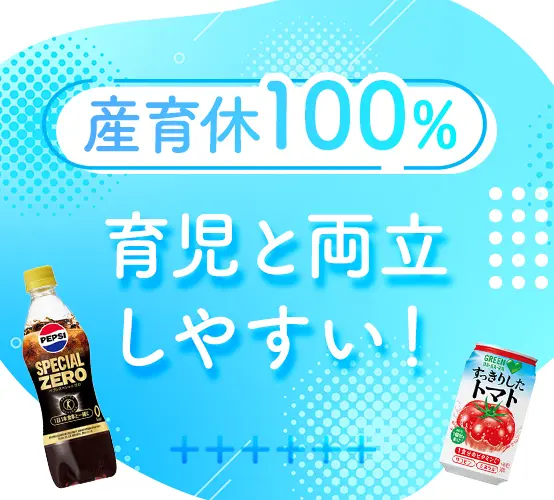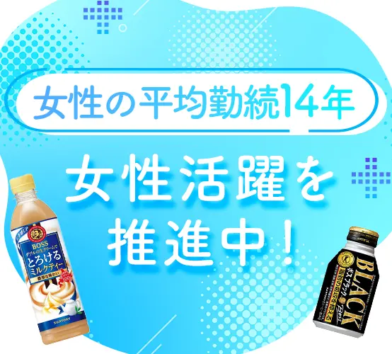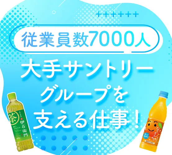 自動販売機やオフィスの給茶機などを通じてサントリーの商品を消費者に届けている私たち。募集する総合職は、バックオフィスから成長を支えるポジションです! 社員一人ひとりのライフスタイルを大切にしている当社。柔軟な働き方ができることが魅力のひとつです。 復帰実績も多数あります!そのほか、育児と両立しながら活躍する女性管理職もいます。 その他、財形貯蓄制度や企業型確定拠出年金制度など、多種多様な福利厚生をご用意しています。 飲料メーカーとして国内NO.1を目指す、サントリーグループの一員として活躍しませんか? 女性活躍を推進しており、積極的な女性管理職の登用を行っています。平均勤続年数は約14年と、長期的なキャリア形成が可能です。 今回募集しているポジションでは、想定年収400万円以上(月給28万円以上)でお迎えします! 退職金・企業型確定拠出年金・従業員持株会など、将来を見据えた福利厚生もしっかり整っています! 生理休暇やつわり休暇、子の看護休暇など女性に寄り添った制度が充実。時短勤務も活用でき、ライフステージに合わせて長くキャリアを築けます。
